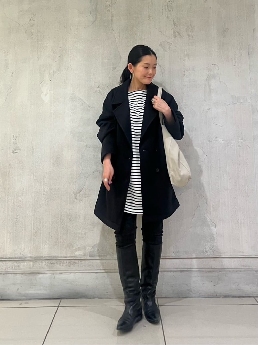 【outer】着用サイズ F size ダンボール素材で軽やかで羽織りやすいアウター たっぷりしたシルエットなので、インナーも気にせずに着やすいデザイン ヒップラインもすっぽりと隠れる着丈で安心感があります。 お袖は少し長いので折って着ていただくのがおすすめです。 【inner】着用サイズ F size しっかりと長さのあるカットソー ヒップラインはすっぽりと隠れるトップス お袖のフレアーが女性らしいデザイン 綿素材なので、程よく厚みがあり 安心感のある一枚 オールシーズン着やすいカットソーです。 【pants】着用サイズ 0size ウエストゴムの楽ちんパンツ ストレッチが効いていて穿きやすく動きやすいパンツ 程よく厚みがあるので足のラインもカバーしてくれて スッキリ穿きやすいパンツです。