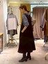 【shirt】Fサイズ ガーゼのように柔らかく、 肌触りの心地よいデニムシャツ。 程よいシアー感がインナー使いとしても使いやすいです。 寒い時期はニットとのレイヤードもおすすめ。 お洗濯後もノーアイロンでOKなのも嬉しいポイント◎ 【onepiece】 154cmで0サイズ着用。 程よくきちんと感も出せる大人ジャンスカ。 透け感もなく、光沢感のある生地で綺麗見えします。 154cmで足首がしっかり見える丈感です。 長め顔好きな方は1サイズでも良さそうです。 (サイズを上げると生地の分量も増えるため、すっきり着たい方は0サイズがおすすめ。)