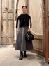 【トップス】 ◻︎後ろドレープTブラウス Fサイズ着用 お尻まですっぽりと隠れる丈感でレイヤードにオススメなアイテムです。 シワになりにくく、伸縮性があり着心地も良いです。 テロンとした素材なので、綺麗めなコーディネートにも合わせていただけます。 ◻︎ファーニットポンチョ フォックスとカシミヤを使用しているため、肌触りが良く暖かいです。 手洗いができるのも嬉しいポイント◎ ワンピースやトップスなど普段のコーディネートにプラスするだけで、ワンランク上のコーディネートが完成します。 【スカート】 ハリのある素材と切り替えで立体的なシルエットが綺麗なスカート。 コーディネートに取り入れるだけで華やかになります。 裏地があるので透け感は気にせず着ていただけます。