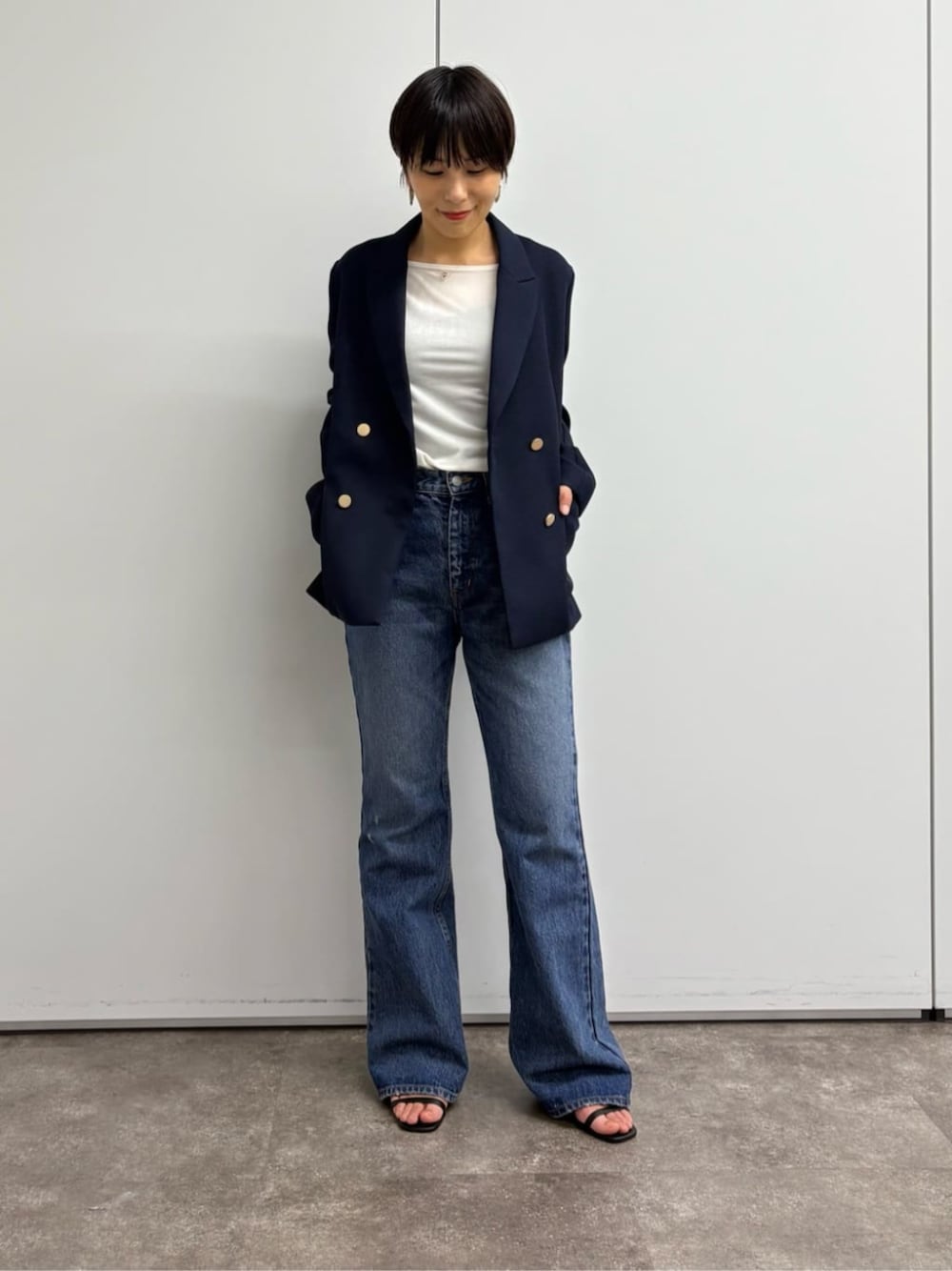 着用スタッフ 159㎝ 【ジャケット】Fサイズ もともとゆったりしたシルエットですが、 程よくハリのあるメッシュ素材が、カジュアルになりすぎず上品な着こなしを演出します。 自宅で手洗いできるのも嬉しいポイント◎ 【インナー】Fサイズ 薄手で軽やかなベロア素材を使用した、上品な透け感が魅力のプルオーバー。 しっとりとなめらかな肌触りと高いストレッチ性で、心地よく体にフィットします。 裾はスクエアカットにサイドスリットを入れ、レイヤードした際もバランスよく決まるデザイン。 ゆるやかに開いたボートネックが、さりげなく首元をきれいに見せ、フレンチシックな印象に仕上げてくれます。