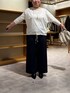 【トップス】 Tシャツ間隔で着れるブラウスです。 お袖のリブがキツくないので腕まくりしやすい。 ドルマンスリーブなので、二の腕やお胸周り気にせず着れました。 後ろの首元にボタンがついているので着脱しやすい。 裾にリボンがついていて、着丈を変えられます。 インスタイル苦手ですが絞ると着丈かけれるので ワイドパンツやスカートスタイルの時に、すっきりとバランス調整できます。 【ボトム】 2サイズ着用 ウエストがリブになっていて、ゴムの所を折り返して着るとお靴やトップスの着丈によって変えれるのが魅力です。 お腹とお尻がとにかく楽なんです! 秘密は、股上が長めなので私のようにポッコリお腹やヒップが出ている方におすすめなんです♩ リピ買いしてしまうほど楽ちんですよ!