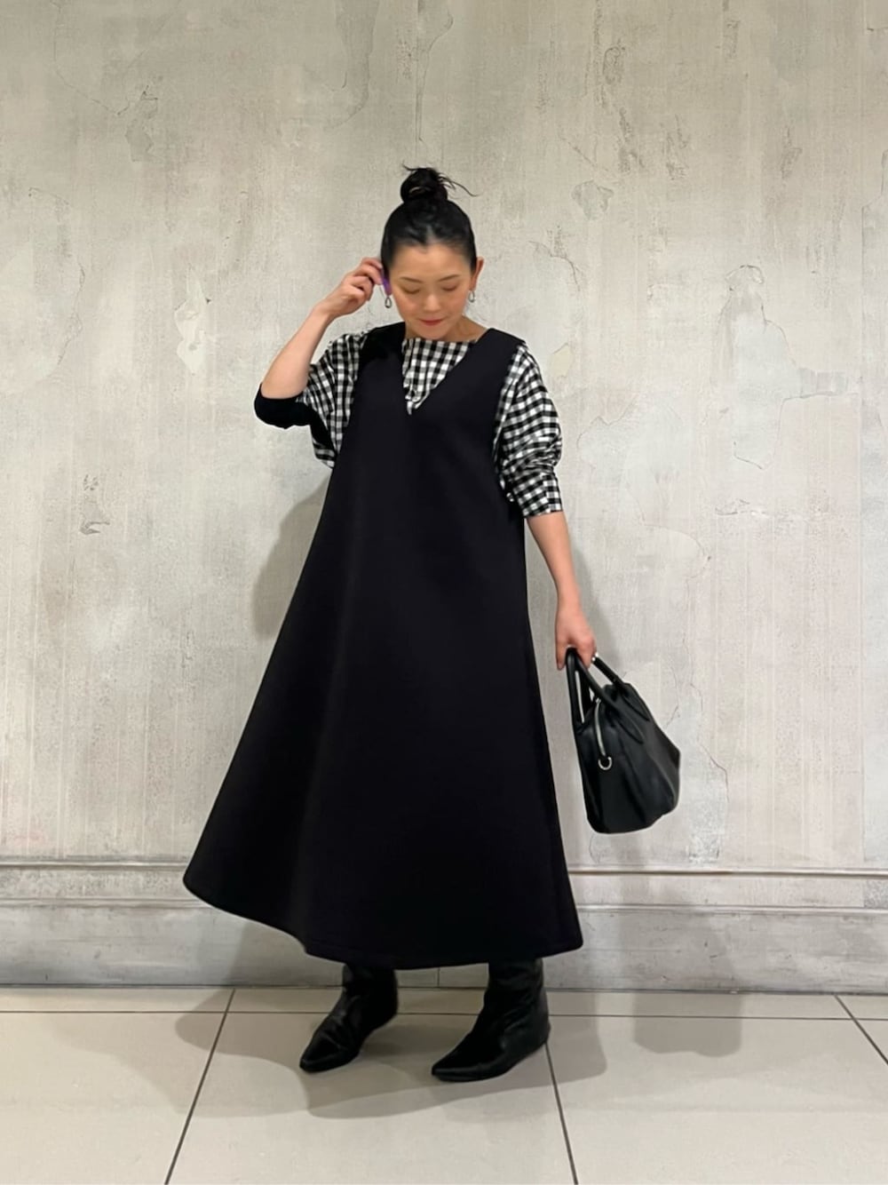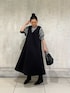 【one-piece】着用サイズ 0size ダンボール素材の軽やかなジャンパースカート 程よく張り感が出るので、身体のラインも広いにくく 程よい厚みでストンと落ち感も出る 嬉しいワンピース インナーを変えるだけで印象が変わるので さまざまなコーディネートを楽しんでいただけます。 【inner】着用サイズ F size たっぷりリラックスしたシルエットのブラウス 後ろにタックが入っていて一枚でもオシャレに決まるブラウス シャツで軽さがあるブラウスですが、長過ぎずスッキリと着やすいデザイン 裾の紐を絞っていただくと長さを調整していただけます。 軽い生地感なので、ジャンパースカートやカーディガンやジャケットのインナーとしてもおすすめ シーズンレスで長く使えるブラウスです。