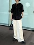 裾にサテン生地とチュールを重ねた タンクトップを使ったコーディネート。 身頃は伸縮性のあるコットンカットソーを使用しているので 肌ざわりが良く着心地も良いです。 いつものニットやカットソーからちらっと 見せるだけでコーディネートが格上げされます✳︎ 何か物足りないと思うときでも この一枚があれば簡単におしゃれ見えします。