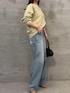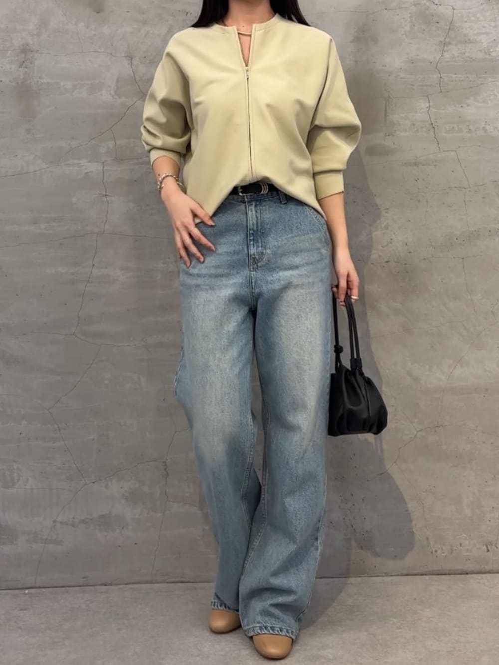 【トップス】 一枚でも羽織としても活用するカーディガン ボタンではなく、ジップ仕様のためクールな印象で大人の抜け感があります。ジップを閉じてトップスとしても活用できるアイテムです。 ゆったりとしたドルマンスリーブと、背中側のサイドに入ったタックが羽織るだけでシルエットをきれいに見せてくれます◎ 【パンツ】 程よい落ち感とダメージ加工のあるデニム ストレートなシルエットは、スッキリ見えして脚長効果抜群! 164cmでヒールのブーツを履いて脚の甲にしっかりとかかる丈感です。 【バッグ】 上質な革を使用したギャザーショルダーバッグ 短いショルダーと長いショルダーがついていて便利◎ 日常からきれいめまで幅広いコーディネートに合わせていただけます。