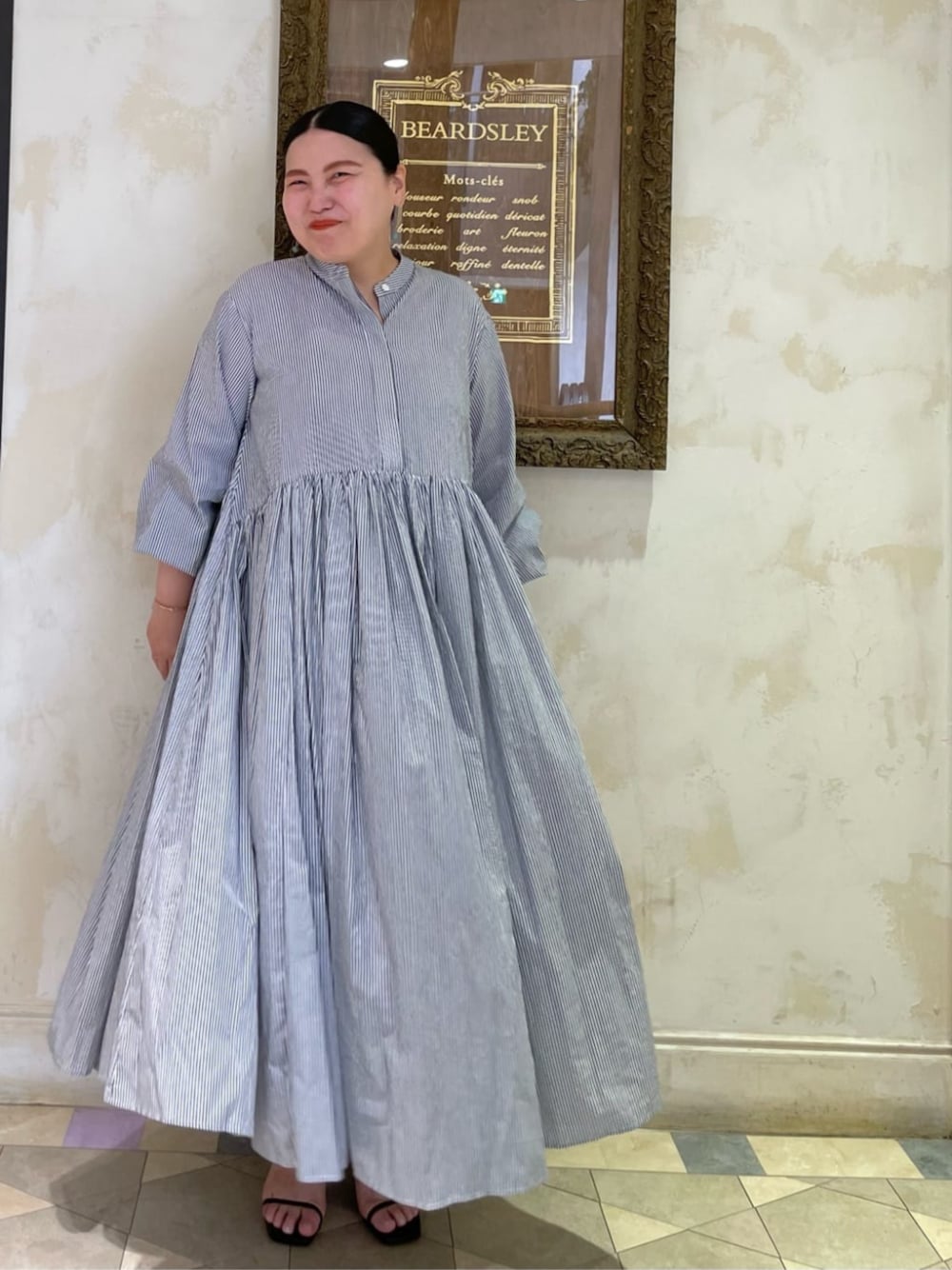 BEARDSLEY(BEARDSLEY)のワンピース「先染めギャザーワンピース」を使ったコーディネート