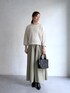 ・シルク畦ニット シルクの糸を使用した、 上質なニット。 伸縮性もあって着心地抜群! 袖が折り返しデザインになっているのも ポイントです! コンパクトな着丈ですっきりお召しいただけます。 ・ジャージーワイドパンツ 大きめのポケットデザインが 素敵なパンツ。 裾に向かって広がるデザインで シルエットが綺麗です。 159cmで1サイズを着用しています。