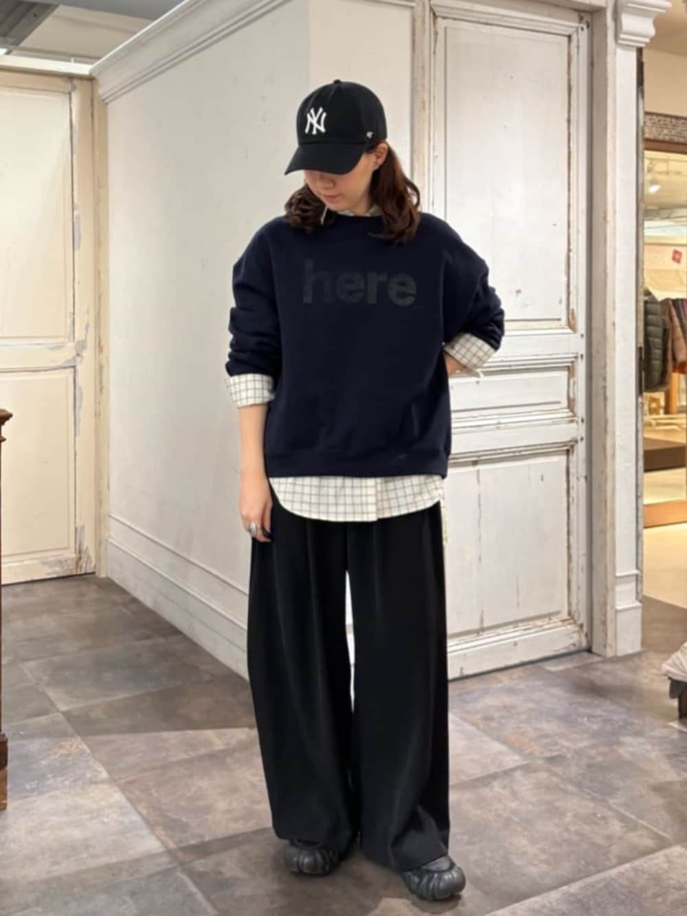 【shirt】 着用サイズ:F オーバーサイズのチェックシャツは、おしりがすっぽり隠れる着丈。 重ね着したり羽織り、1枚でも、とにかく着回しが効くので重宝します! チェック柄がカジュアルコーデにぴったりです! 洗濯: 伸縮性:なし 透け感:多少あり 裏地:なし 【tops】 着用サイズ:F シンプルなロゴスウェット。 薄すぎず、厚すぎない生地感で、秋から春にかけてロングシーズン活躍◎ 袖も身頃も、程よいゆったりシルエットで着ていただけます! 洗濯: 伸縮性:あり 透け感:なし 裏地:なし 【pants】 着用サイズ:F タックが縦のラインを強調してくれて、すっきり見え! 身体のラインを拾わなくて、腰周りも安心◎ 158cm、ズルっと着るのにちょうど良いです! 洗濯: 伸縮性:あり 透け感:なし 裏地:なし