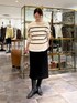 【ニット】着用サイズ:F ふんわりと柔らかく、あたたかみのある風合いのニット。 前後どちらでも着られる2way仕様なので、カーディガンにもアレンジ可能です◎ 154cmで腰骨下の丈感。 ワイドパンツやスカート、どんなボトムにも合わせやすいです。 【ブラウス】着用サイズ:0 1枚でも、重ね着でも、ジャケットやベストのインナーとしても 活躍する万能ブラウス。 白でも透けにくいのでインナーを気にせず着られます◎ 154cmで0サイズが丁度良い丈感◎ 【スカート】着用サイズ:0 ダンボール素材で柔らかい生地のタイトスカート。 伸縮性のあるダンボール生地とスリット入りなので、タイトなシルエットでも足さばきが良いです◎ 程よくハリがある素材なので、体のラインを拾いにくく綺麗に見せてくれます。 154cmで0サイズを着用し、脛の真ん中あたりの丈感。