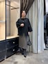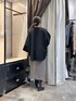 【アウター】着用サイズ:F ウールで暖かいポンチョ型コート。 袖がゆったりしており、 ドルマンスリーブや厚手のトップスも着られます。 153cmの私が着ると ヒップの下まで隠れる丈ですが、 スリットが深く入っており目線が下がりすぎず、 スカートを合わせてもすっきり見えます。 ノーカラーなので、 肩まわりがすっきり見えるところも嬉しいですし、 フード付きやタートルネックのトップスも 合わせやすいので、着回しの幅も広いです。 【ニット】着用サイズ:F ゆったりしていて、お腹をカバーできるニット。 ドルマンスリーブなので二の腕もカバーできます。 私は胸や肩の厚みが気になるのですが、 横にやや広めにまっすぐ開いたボートネックなので、 すっきり見せることができます。 シンプルかつ、生地は厚手すぎないので、 オフィスカジュアルにもおすすめです。 153cmの私が着て、腰骨が隠れる着丈です。 裾のゴムが腰で留まります。 【スカート】着用サイズ:1(3サイズの真ん中) 弾力のあるダンボールの生地を使用し、 ストレッチの効いたタイトスカートです。 タイトスカートのジャンルではありますが、 ストレートなシルエットなので 足やヒップに貼り付かず、 ボディラインが出にくいところが嬉しいです。 後ろにはスリットが入っていて、動きやすいです。 153cmの私が履くと、ショートブーツを履いて タイツが見える着丈です。