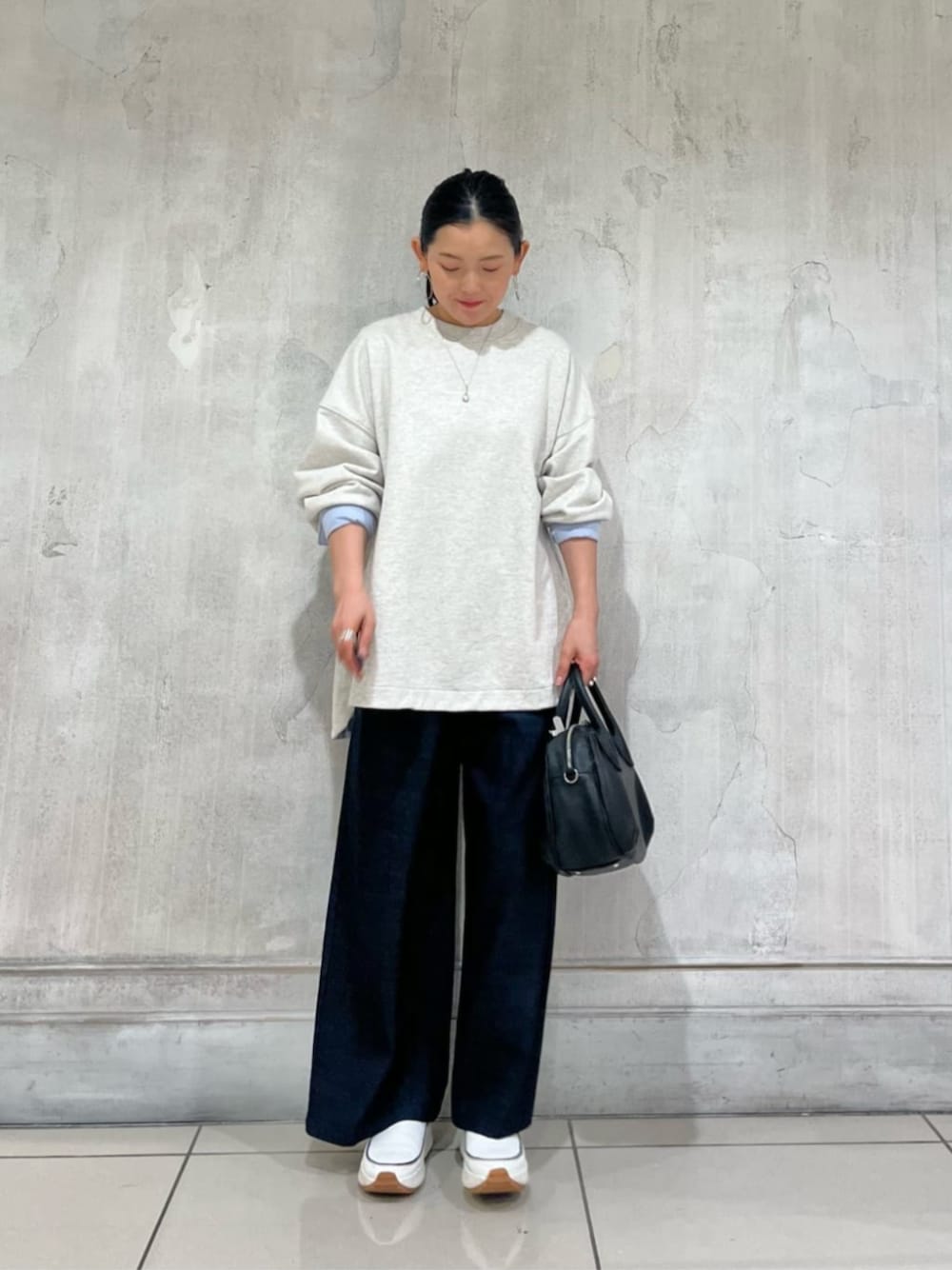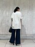 【tops】着用サイズ F size お袖の切り替えがオシャレなトップス シンプルでしっかりと長さのあるデザイン ヒップラインがすっぽりと隠れて安心感のあるトップスです。 【pants】着用サイズ 1size ウエストゴムの楽ちんパンツ ワイドですが、ストンとした落ち感でスッキリと穿きやすいシルエット 程よくツヤがありキチンと感もあるパンツ シワになりにくくご旅行などにもおすすめです。 156cmで1サイズを着用しています。 くるぶしがすっぽり隠れる長さがあり安心感のある着丈です。