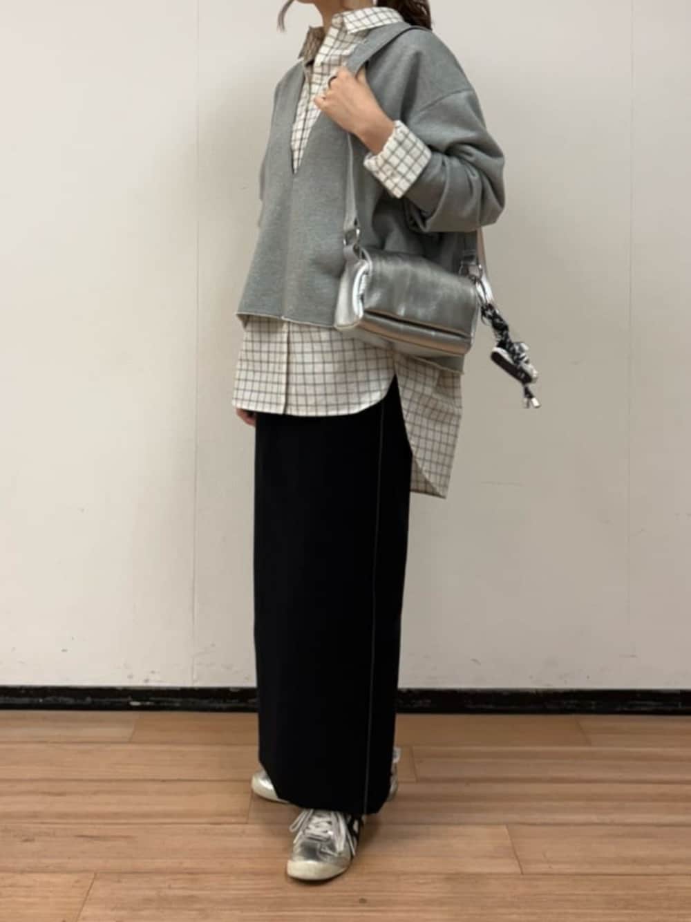 【shirt】 着用サイズ:F オーバーサイズのチェックシャツは、後ろが長めでおしりがすっぽり隠れる着丈。 薄手なので羽織りや1枚、ニットのインナーにしてオールシーズン着回しがききます! 洗濯:手洗い可 伸縮性:なし 透け感:多少あり 裏地:なし 【tops】 着用サイズ:F 深めのVネックトレーナー。 お袖がたっぷりなシルエットで、裾が切りっぱなしのようなデザインに。シンプルながらに女性らしい1枚です! 丈は長すぎず、スカートと合わせてもバランス◎ 洗濯:手洗い可 伸縮性:あり 透け感:なし 裏地:なし 【skirt】 着用サイズ:F タイトスカートという名前ですが、体にピタッとしなくてラインを拾わないから安心! ウエストはグルっと1周ゴムなのでとっても楽ちん! ストレッチが効いていて、裾にスリットが入っているので足さばきも◎ 158cm、くるぶしくらいの丈感でした! 洗濯:手洗い可 伸縮性:あり 透け感:なし 裏地:なし