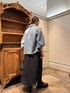 Gジャン 1サイズ 袖がリブになっていて、 柔らかいデニムなので羽織りやすいです。 たくしあげるとふわっとしたバルーン袖になるので女性らしい印象に。 背中にはタックがあるのでスッキリとした印象になります。 ブラウス 0サイズ着用 シワになりにくくて襟元も開きすぎてないので1枚でも着やすいです。 透けにくく、自宅でも洗えます。 パンツにインしてますが、腰周りが隠れるくらいの長さがあり、レイヤードにも使えるアイテムです。 パンツ(1サイズ着用) 履いてなくらい楽チンなスカートに見えるパンツ。 シワになりにくく、ウエストはゴムで紐もついているので調節可能。 タイツやレギンスを中に入れると冬もにも活躍するアイテムです! バック 柔らかいレザーで手持ちでもショルダーにしても使えます。