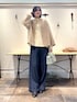 【tops】着用サイズ:F 軽くて暖かい、ゆったりシルエットのファーニット。 172センチで腰かかるくらいの丈感で安心です。 お袖とサイドのスリットがスッキリ見えしてくれます。 洗濯:ドライクリーニング 伸縮性:あり 透け感:なし 【pants】着用サイズ:3サイズ ウエストのリブ素材か履きやすさ抜群。 シワになりにくく、光沢感のある見た目でキレイめにもカジュアルにも、トップス選ばず着ていただけます。 172cm 3サイズ着用で足首がしっかり隠れる長さです。 落ち感のある素材なのでゆったりシルエットでも綺麗見えします。 洗濯:手洗い可 伸縮性:なし 光沢:なし 厚み:ふつう 透け感:なし 裏地:なし ポケット:あり ファスナー:なし 【outer】着用サイズ:1サイズ 背中がぷっくりとしていて、羽織るだけで可愛くなるコート。 ウール100%で裏地付きで暖かいです。 ご身長に合わせて選べる2サイズ展開です。