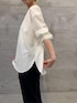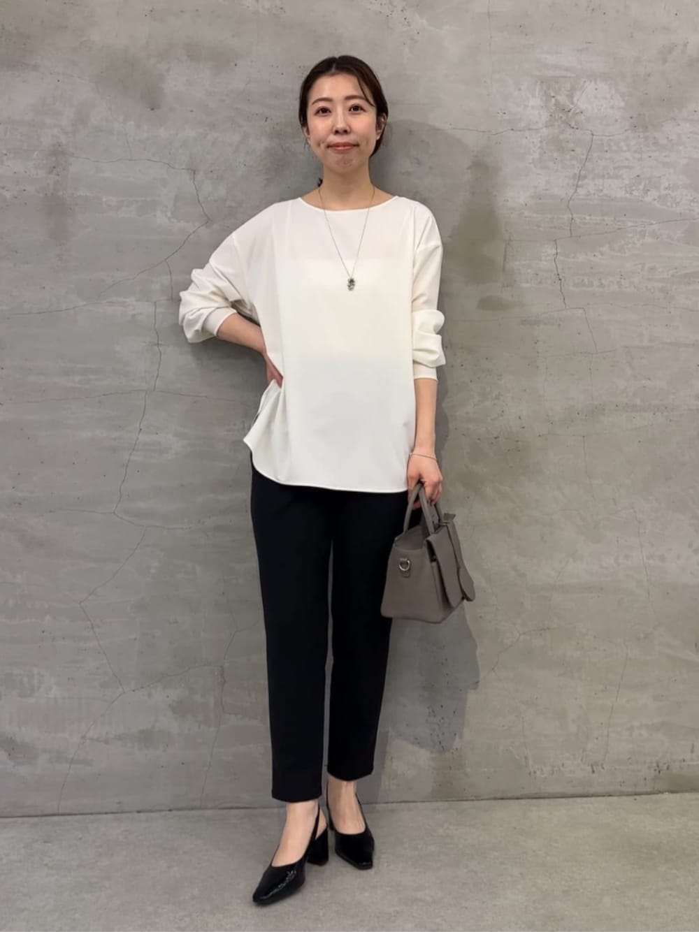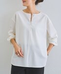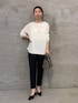 【ブラウス】Fサイズ 前後どちらでも着用できる2WAY仕様。 リングジップを前にすればアクセサリーのようにアクセントになり、 ジップを少し下げてキーネックデザインとしても楽しめます。 程よくハリのある素材なのも薄手過ぎず 長いシーズン着られます◎ 【パンツ】0サイズ 人気のウエストリブパンツにテーパードタイプが登場。 ウエストリブの履きやすさはそのまま、 すっきり細身シルエットに。 シワになりにくく、デスクワーク等お仕事スタイルにもおすすめです。