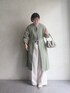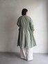 【アウター】Fサイズ着用 長いシーズン通して活躍するフレアーシルエットのノーカラーコート。 シーンを選ばずお使いいただける万能アイテム。 ウエストのドロストコードを絞ると シルエットに変化を付けれます。 袖口はゴム入りなので、たくし上げるとパフスリーブにシワになりにくく、脱いだ時にコンパクトに畳めるのも嬉しいポイント! 【パンツ】Fサイズ着用 ウエストのアシンメトリーなデザインが目を惹くワイドパンツ。 ボタン位置でサイズ調整ができ、 フィット感を自分好みに整えられます。 フロント釦を、ウエストベルトのボタンホールに留めると、身頃とは反対色のボタンが3つ並び、さりげないアクセントになります。