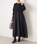 ニット×ナイロンスカートの異素材コンビワンピース。 トップスには、さらりとした肌触りのハイゲージニットを使用し、上品で落ち着いた印象に。 スカート部分には、程よいハリ感のあるナイロン素材を組み合わせ、シルエットがきれいに出るデザインに仕上げました。