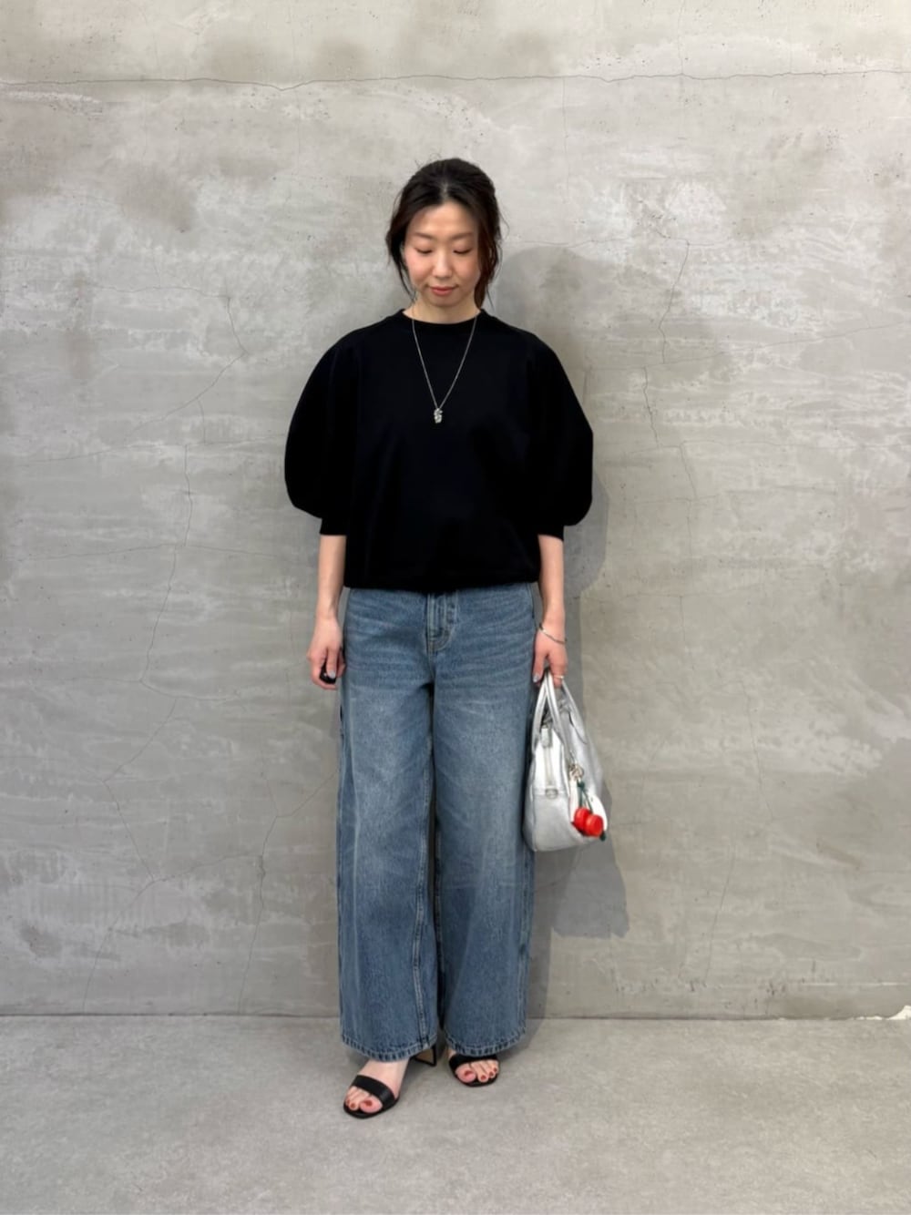 【トップス】 ランタンスリーブが大人可愛いトップス。 生地は肉厚すぎない綿100%なので着心地も軽やか。 カジュアルな素材ですが お袖の立体感や柔らかいフォルムが女性らしくラフ見えしない1枚。 【デニム】 広すぎないワイドシルエットで 体のラインを拾わずすっきり見せてくれます。 ウエスト位置が高くて脚長効果も。 157cmで0サイズを着用しています。