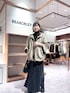 春先に活躍するブルゾンコーデ。シンプルになりがちな春コーデをちょっとだけ華やかにしてくれます。 【ブルゾン】Fサイズ ふんわりバルーン型がかわいいブルゾン。程よいハリがあります。シャカシャカしすぎずソフトな質感で、さりげない光沢があるので品よく着られます。 気になる腰回りもしっかりカバーしてくれる丈です。サイドのリボンはいらない時はポケットにくるんと入れても着られます。 シワが気になりにくいので、小さく畳んで持ち運べますよ! 【ニット】Fサイズ ショート丈でインせず着られるハイネックニット。裾が後ろ下りで自然とほのかに丸みが出るのでシンプルなのに様になります。 お袖がぷっくりしているのもかわいいです。 【スカート】1サイズ着用 実はゆったりしてるのに、キュプラ素材で落ち感が良くて美シルエットになるロングスカート。 ウエストは総ゴムで、内側のお紐でも調節できます。後ろのテール(生地が足された部分)がひらりと動きがでるので、歩いた時のシルエットもきれいです。 【バッグ】 大きすぎず小さすぎずの、絶妙なサイズ感が使い勝手の良いボストンバッグ。 シボ入りのレザーで、傷が目立ちにくいです。 マチがしっかりあるので、身の回りの荷物がたくさん入りますし、レザーにしては重くないので旅行にもおすすめ。 ショルダーのストラップの長さが細かく調整できるので、肩がけでも斜めがけでもお使いいただけます。 【ピアス】 大きめのフープが、顔周りを華やかにしてくれます。
