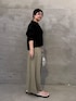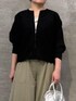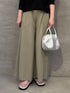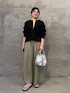 【カーディガン】着用サイズ:F 一枚でも、織りとしても活躍するカーディガン。 ジップ仕様で甘さをおさえたクールな印象で、ボタンカーディガンとはまた違った大人の抜け感を楽しめます。 ジップを閉じてトップスとしても活躍するので、ウールが苦手な方にもおすすめです。 肩まわりが切り替えのないゆったりとしたドルマンスリーブで動きやすいです◎ 165cmの私はFサイズ着用で、お尻に少しかかる丈感です。 【タンクトップ】着用サイズ:1 シャツ素材を使用しているので、カジュアルになりすぎず、重ね着にも大活躍のタンクトップ。 裾や首元は、切りっぱなしのバイアス生地を使用しているのがポイントです! 透け感があるので、1枚で着る際はキャミソール等を重ねるのがおすすめです。 165cmの私は、1サイズでお尻が隠れる丈感です。 【パンツ】着用サイズ:2 薄手でシボ感のあるストレッチジャージー素材を使用したワイドパンツ。 裾に向かって緩やかに広がるシルエットで、ジャージー素材ですがラフになりすぎず、すっきりとした印象で着用していただけます。 ウエストはゴム仕様に加え、ヒモでサイズ調整が可能なため、ストレスフリーな穿き心地です◎ 165cmの私は、2サイズ着用で足首が隠れる丈感です。