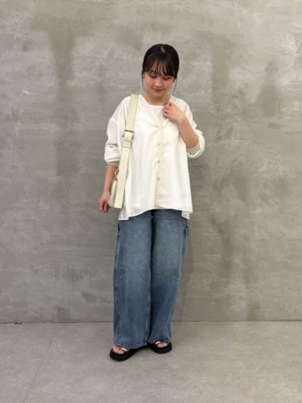 【トップス】 シアーのブラウス素材を使用したカーディガン。袖口がリブなのでまくっても落ちてこなく、低身長でもバランスが取りやすいです。 着丈はヒップが隠れるくらいです。 【パンツ】着用サイズ:0 ハイウエストで着用して床につくかつかないかくらいの着丈でした。靴を穿くとちょうどいいと思いました! ウエストが大きい方はベルトをして着用するのもおすすめです。
