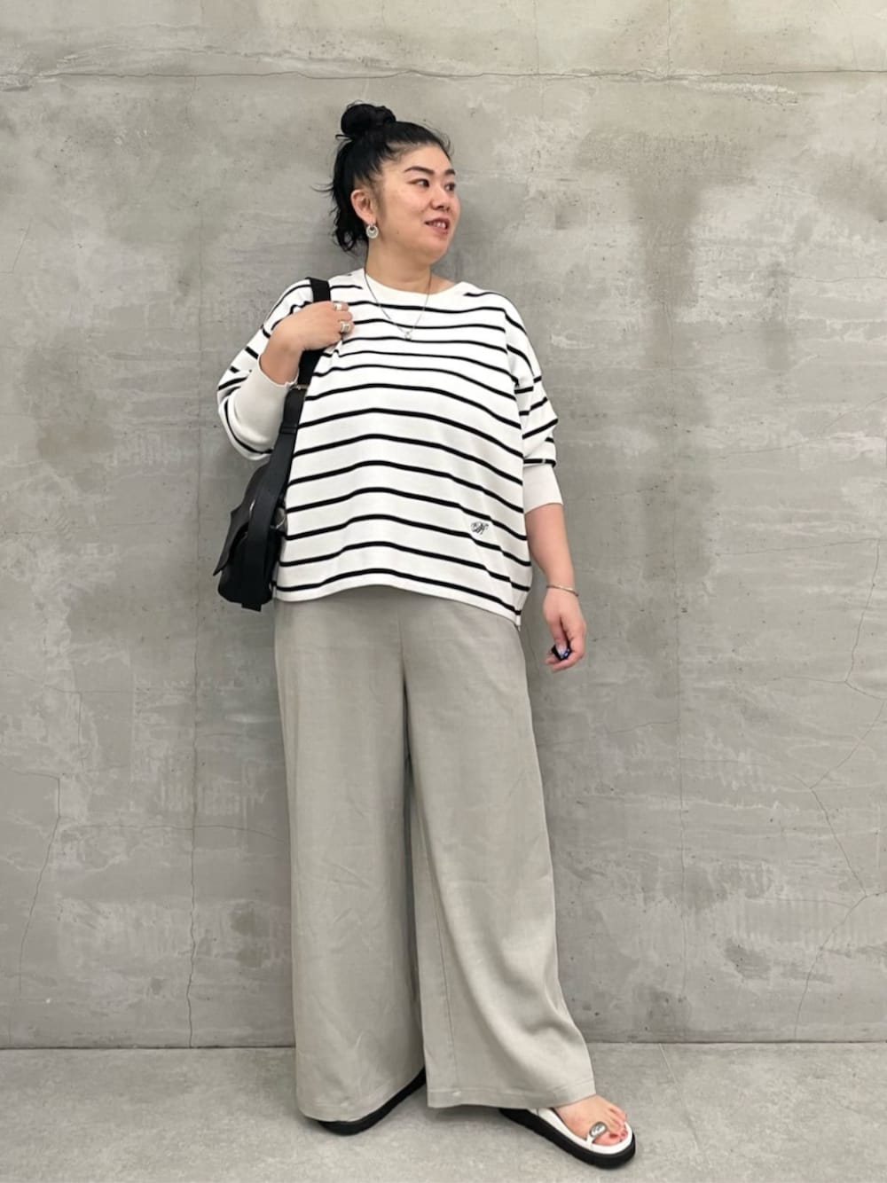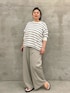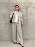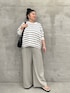 【knit】 着用サイズ : F ビアズリーのイニシャル「BA」を刺繍したプルオーバーニット。 さらっとした肌触りと程よい肉厚の生地感で、伸縮性もよく着心地のいい素材となっています。 洗濯 : 手洗い可 伸縮性 : あり 裏地 : なし 【pants】 着用サイズ : 3 ビアズリー人気のウエストリブパンツ。 1番大きい“3サイズ”を着用しています。 166cmの私は今までのサイズだと丈が足りなかったのですが、今回はフルレングスで履けました。 また、腰回りも今までよりも余裕があります。 洗濯 : 手洗い可 伸縮性 : ウエスト部分のみあり 裏地 : なし