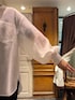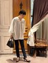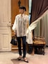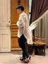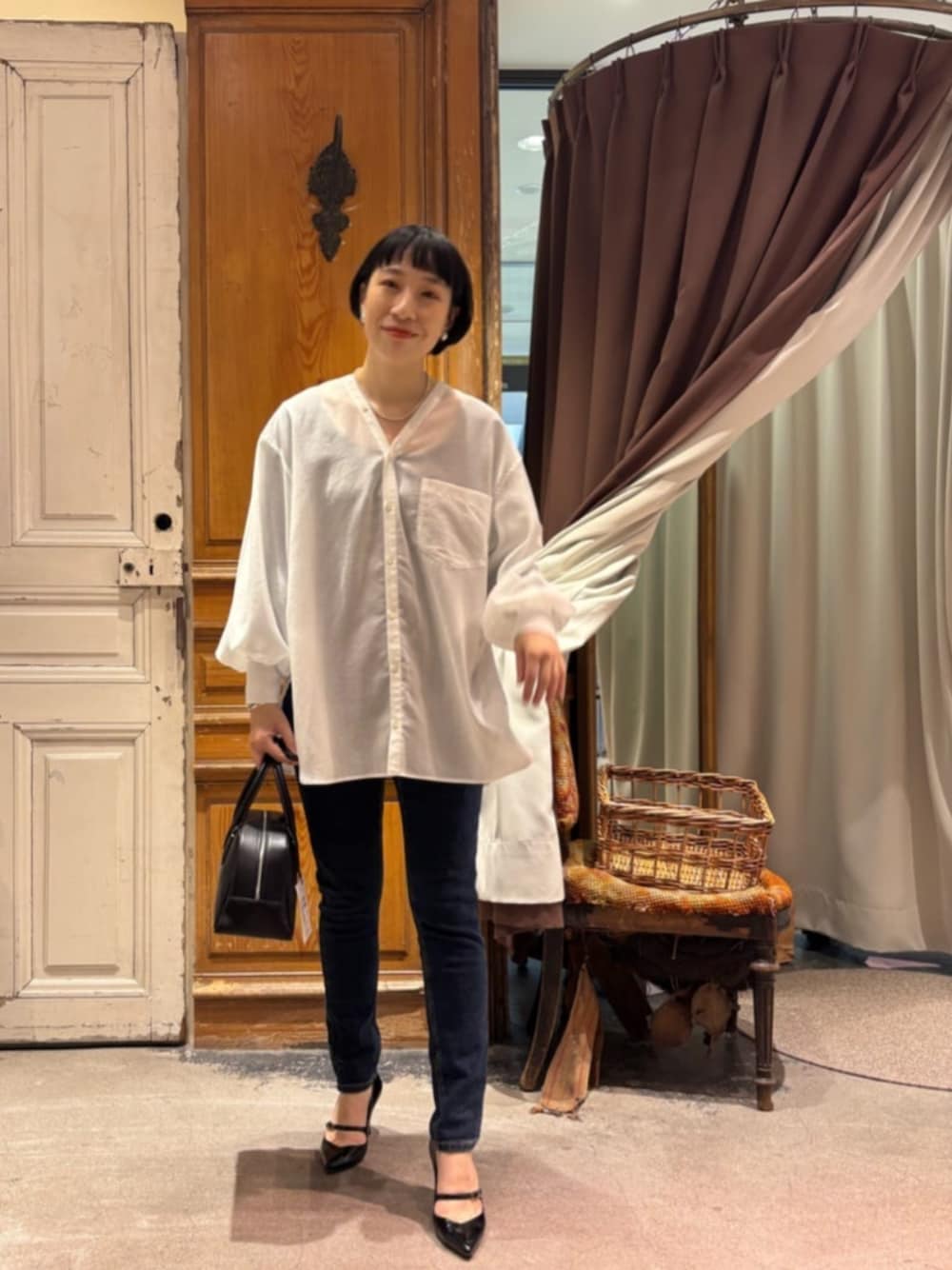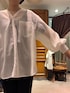 襟のあるシャツが苦手な方にもオススメなこちら。 カラーレスで、お顔まわりがすっきりしたブラウスです。 大人上品なシアーシャツは、 袖口がリブになっているので、捲ってこなれ感が出ます。 デニムコーデにも、お仕事コーデにもオススメです。