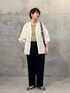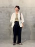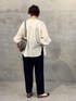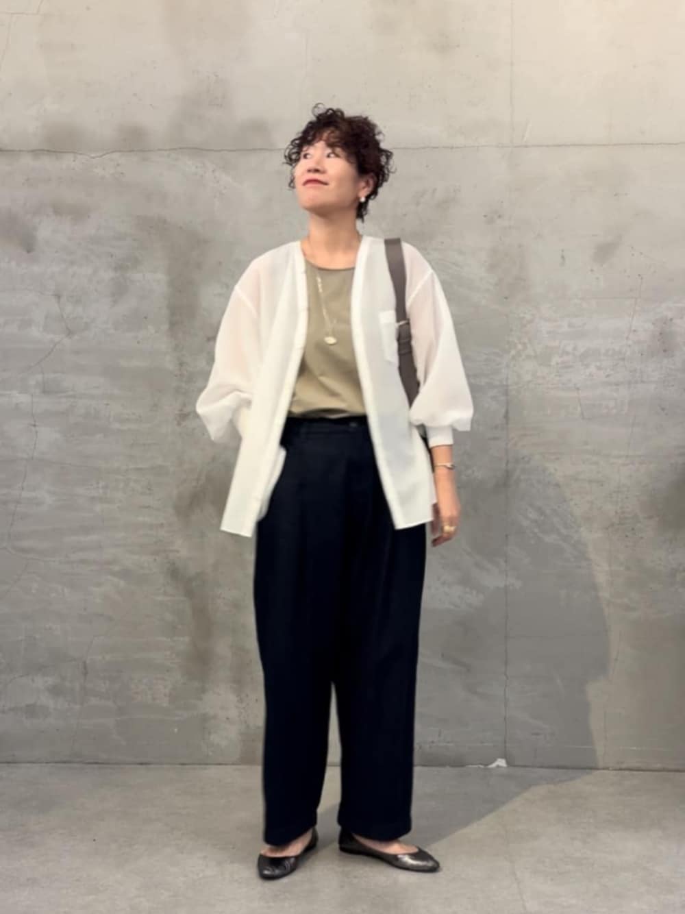 【カラーレスシャツ】 シアー感のあるノーカラーシャツ 袖口はリブ仕様(ゆったりめです。)で、袖をあげて立体感を出したり、シンプルでありながら 印象的です。 開けて羽織ることも出来るので、軽羽織として着るのもオススメです。 【ルーズタックデニム】 171㎝ 1サイズ着用 深いタックが入って腰回りにゆとりが生まれます。 さらに裾にかけて細くなるので、スッキリみえます。 実はウエストの後ろ部分はゴムが入っていて 座っている時でも快適です✨ 【シャツタンク】 1サイズ着用 綿に少しポリウレタンが入っているので、 肌触りがよく、身体にも馴染みます。 カットソー素材のタンクトップより きちんと見えるのが人気の理由です。 【レザーボディバッグ】ボディバックって容量が少なすぎても大きすぎても困るから、 実はちょうどいいバックを見つけるのは難しいと思うのです。 でも、このバック、500mlも化粧直しも入ってしまうから充分すぎる✨ 布だとカジュアルになりすぎてしまうのですが、 レザーの上品さがお気に入りのこのバック。 ベルトをつけ変えるとバックが主役になるので、 変化を楽しみたい方にもピッタリです!