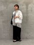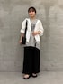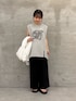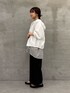 【トップス】 フロントの立体的なBA刺繍がアクセントになったノースリーブカットソー。 肩にタックを入れほどよく二の腕をカバーしてくれます。 やや長めの着丈で149cmで太ももまで隠れる着丈。ショート丈のシャツを羽織ることで目線をアップできるコーデにしました。 【シャツ】 程よいハリ感で軽やかに羽織れるフーディーシャツ。 ボタンを留めて一枚着トップスとしてはもちろん、羽織りとしても使えます。 ショート丈なので小柄さんもバランスがとりやすいです。 【パンツ】着用サイズ:0 ビアズリー定番として長く愛されている、ウエストリブシリーズに、上品な表情のダブルクロス素材が登場。 二重織りならではの程よい厚みとハリがあり、身体のラインを拾いにくく、落ち感も美しいのが特徴です。 また、ウエストには紐がついているので幅広い体型の方にお召しいただけます。