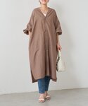 【ワンピース】着用サイズ:F 落ち感のある素材が上品なガウンワンピース。 バックスタイルがVネックデザインで後ろ姿まで女性らしい印象です◎ お袖はバルーン仕様になっていて袖口のボタンでシルエットの調整が可能です。 1枚でワンピースとしてはもちろん、前を開けて羽織りとしても着用できます! 165cmの私はFサイズ着用でふくらはぎが半分くらい隠れる丈感です。 【キャミソール】着用サイズ:F 取り入れるだけで華やかさをプラスしてくれるレースキャミソールです。 シャツや羽織、ベストのインナーとして着用するとレースがチラッと見えて可愛いです! 165cmの私は、Fサイズ着用でお尻にかかる文感です。 【パンツ】着用サイズ:F コットンの柔らかい肌触りと通気性の良さで快適な穿き心地です◎ ゆったりとしたワイドシルエットが脚のラインを拾わず、ウエスト後ろ部分はゴムなのでお腹周りも楽に着用していただけます。 165cmの私は、Fサイズ着用で足首にかかる丈感です。