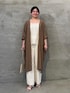 【ワンピース】着用サイズ:F 落ち感のある素材が上品なガウンワンピース。 バックスタイルがVネックデザインで後ろ姿まで女性らしい印象です◎ お袖はバルーン仕様になっていて袖口のボタンでシルエットの調整が可能です。 1枚でワンピースとしてはもちろん、前を開けて羽織りとしても着用できます! 165cmの私はFサイズ着用でふくらはぎが半分くらい隠れる丈感です。 【キャミソール】着用サイズ:F 取り入れるだけで華やかさをプラスしてくれるレースキャミソールです。 シャツや羽織、ベストのインナーとして着用するとレースがチラッと見えて可愛いです! 165cmの私は、Fサイズ着用でお尻にかかる文感です。 【パンツ】着用サイズ:F コットンの柔らかい肌触りと通気性の良さで快適な穿き心地です◎ ゆったりとしたワイドシルエットが脚のラインを拾わず、ウエスト後ろ部分はゴムなのでお腹周りも楽に着用していただけます。 165cmの私は、Fサイズ着用で足首にかかる丈感です。