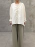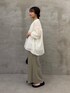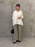 【トップス】 シアーのブラウス素材を使用したカーディガン。袖口がリブなのでまくっても落ちてこなく、低身長でもバランスが取りやすいです。 着丈はヒップが隠れるくらいです。 【パンツ】着用サイズ:0 幅太めのバギーパンツですが、落ち感のある素材で広がりすぎないです。春夏快適に着られるさらりとした素材。 149cmでも裾上げなしでくるぶし下くらいの着丈でした。