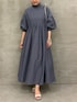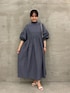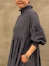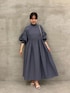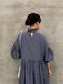 【ワンピース】着用サイズF ワンピースはシンプルになりがちですが、これはシャーリングが効いたモックネックと袖口がポイント。首元はゆとりがあるので、締めつけ感もなく着やすいです。袖口はゴムなので、きゅっとたくし上げてもとまってくれます。パフ袖になるのも可愛い。 162cmの私でも、くるぶしが見えるくらいの長めの丈感で着れたのが嬉しいポイントです。
