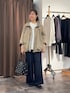【outer】着用サイズ:F パッと羽織るだけで着映えする スプリングコート。 裏地がアクリル混なので、 身ごろが温かいです。 ストレッチが効いている裏地なので 着心地抜群です。 158cmの私がきると お尻にかかる着丈です。 洗濯 :ドライクリーニング 伸縮性:裏地のみあり 透け感:なし 裏地 :あり 【tops】着用サイズ:F 生地がしっかりしたカットソー。 伸縮性があるので着心地抜群です。 透け感が少なく インナーを気にせず着れるのがポイント。 158cmで腰が隠れる着丈です。 洗濯 :手洗い可 伸縮性:あり 透け感:ほぼなし 裏地 :なし 【pants】着用サイズ:1 ビアズリーのロングセラーアイテム。 ウエストリブデニムパンツ。 股上が深く、お尻のラインを拾わず綺麗なシルエットでお召しいただけます。 ウエストはリブ使用になっているので、履き心地も楽ちんです。 生地に艶があるので、デニムでも綺麗目な印象にで着れるのは嬉しいですよね。 洗濯 :手洗い可 伸縮性:なし 透け感:なし 裏地 :なし