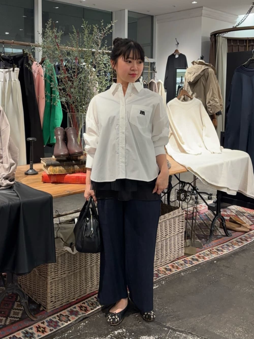【トップス】 シンプルなシャツにビアズリーのワンポイント刺繍が素敵✨️ 着丈も長くないので低身長さんでも着やすく、 腰周りやお尻も隠れる安心の丈感です、 【ボトムス】着用サイズ:0サイズ ウエスト総ゴムで楽に履ける1枚。 サイズ展開もあり、丈感やウエストが自分に合ったボトムスが見つかりますよ。 お洗濯も簡単に出来るのも嬉しいポイントです。