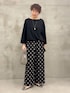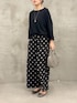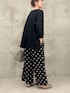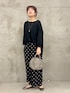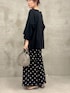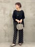 【イニシャルメロープルオーバー】 リラックス感のあるビッグシルエットでありながらボートネックでスッキリ見えるプルオーバー。 綿とキュプラのサラッとした着心地が最高です。 サイドスリットで前だけをインしてももたつきがなく、インするとサイドの調整が難しい😓って方も安心です。 【ドットプリントパンツ】 黒ベースに大きめのドットを配して大人の遊び心を感じるパンツ 柔らかな綿で作られたウエストとサラッとした素材で着心地も⭕️ シワになりにくく、手洗い可能で取り扱いが楽なのもよいです! 【ラウンドミニボストン】 丸みのあるラウンドボストンでかっちりしすぎずに 柔らかい印象も備えたバック。 小振りながらに500㎖のペットボトルも化粧直しもたっぷり入るので きちんとしたいときに小さいバックで綺麗にみせたいけれど 物が入らなくてサブバックを持つなんて必要がないので スタイリッシュさと実用性が備わっています。 外ポケットがあるように見えないのに、外ポケットがあるのも デザインにも、実用性にも抜かりなくておすすめです。