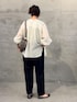 【カラーレスシャツ】 シアー感のあるノーカラーシャツ 袖口はリブ仕様(ゆったりめです。)で、袖をあげて立体感を出したり、シンプルでありながら 印象的です。 開けて羽織ることも出来るので、軽羽織として着るのもオススメです。 【ルーズタックデニム】 171㎝ 1サイズ着用 深いタックが入って腰回りにゆとりが生まれます。 さらに裾にかけて細くなるので、スッキリみえます。 実はウエストの後ろ部分はゴムが入っていて 座っている時でも快適です✨ 【シャツタンク】 1サイズ着用 綿に少しポリウレタンが入っているので、 肌触りがよく、身体にも馴染みます。 カットソー素材のタンクトップより きちんと見えるのが人気の理由です。 【レザーボディバッグ】ボディバックって容量が少なすぎても大きすぎても困るから、 実はちょうどいいバックを見つけるのは難しいと思うのです。 でも、このバック、500mlも化粧直しも入ってしまうから充分すぎる✨ 布だとカジュアルになりすぎてしまうのですが、 レザーの上品さがお気に入りのこのバック。 ベルトをつけ変えるとバックが主役になるので、 変化を楽しみたい方にもピッタリです!