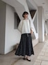 【ブラウス】 首開きすっきり、シンプルなデザインなので1枚でももちろん、羽織りのインナーにしやすいです。 薄すぎず白でも透け感気にせずに着られます。 裾の紐で着丈調整できるところも使いやすいポイントです。 【スカート】1サイズ着用 トロミのある柔らかい生地感なので、裾の動きも綺麗でスルンと落ち感があり細見えが叶います! ドットの大きさも大人にちょうど良いなと思いました。 シワになりにくく、小さくなるのでご旅行に持っていくのにもおすすめ♡ ポケットもありますよ。