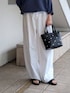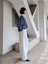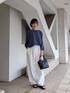 【ブラウス】 首開きすっきり、シンプルなデザインなので1枚でももちろん、羽織りのインナーにしやすいです。 明るすぎず暗すぎずのブルーなので、普段色を着慣れない方にも安心して着られるトーンだと思いました。 裾の紐で着丈調整できるところも使いやすいポイントです。 生地感も薄すぎず汗ジミの心配もなさそう。 【パンツ】2サイズ着用 トレンド感のあるバレルシルエットは、穿くだけでオシャレな雰囲気に。 特殊な加工がされたナチュラルな風合いで、綿100%なのにハリッとした肌離れのよい穿き心地でした。 164cmで2サイズは、フラットシューズだと床に着くすれすれの長さでした。厚底の靴やヒールで合わせると脚長効果抜群。 フラットシューズには1サイズがちょうど良さそうです。