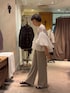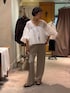 ビアズリーのワイドパンツって、 落ち感があって、 すっきりとするんですよね、 けど、ワガママ言うと、、 もう少しメリハリがほしい。 そーーんなワガママが叶うパンツがこれ! ワイドパンツにかわりはないのですが、 素材にほどよい重さがあり、 裾に向かってフレアなので、 脚のくびれを感じれて動くたびに、 ほっそりします! 最近、脚が緩んできた悩みがあるのですが、 着痩せが叶うってこういうことですね。 履いてて嬉しくなっちゃいました♡ 春はもちろん、 夏、秋とロングシーズン楽しめる一本です✨ シャツ合わせはもちろん、 ブルゾンを羽織ってカジュアルにも、 着回せる一本です♪ フリルのシャツとコーデすれば、 軽やかなコーデの完成です。