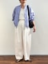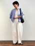 【裾絞りオーバーブラウス】 密度の高いコットン素材が立体感があるブラウス 襟があると、襟のデザインで着るシーンが限定されがちですが、 ノーカラーのブラウスはボタンを閉じても ちょっと開けて着ても⭕️ 【シャツタンク】 1サイズ着用 (2サイズ展開) 綿に少しポリウレタンが入っているので、 肌触りがよく、身体にも馴染みます。 カットソー素材のタンクトップより きちんと見えるのが人気の理由です。 【コットンバレルパンツ】 2サイズ着用 (3サイズ展開) カーブラインが綺麗なバレルパンツ。 コットン素材でハリがあり、穿くだけでコーディネートに立体感をだしてくれます。 ウエスト部分は前からみると前開きですが 横から後ろはゴム仕様で快適です! 171㎝でちょうどよい丈感で安心✨