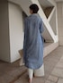 【ワンピース】 「シフォン」の名のとおり、とっても軽い着心地です。 普通のデニムシャツだとカジュアル見えしすぎて難しいなと感じる方にも、こちらならキレイめに着られます! ほんのりシアーな生地感も今っぽい雰囲気に。 アームや身幅はゆったりしてますので中に長袖も窮屈感なく着られますよ。 初夏に向けて日除けにもなりますね! 前を閉じて着る場合はボトムス細身、開けて羽織る場合はワイドパンツもバランス良いです。