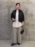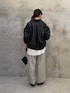 【ブルゾン】着用サイズ:F 程よくゆとりがあるので、着脱もしやすく、見た目よりも軽くて柔らかいのでサッと羽織りやすいです。 ダブルジップでお好みの位置で調整も可能です。 袖口はゴム仕様なので、まくって手首を出せるのが嬉しいポイントです◎ パンツ・スカート問わず合わせやすいデザインです。 165cmの私はFサイズ着用で、腰が隠れるくらいの丈感です。 【ブラウス】着用サイズ:F 立体的なドルマンスリーブが素敵なシアーブラウス。 手首のリブの部分が長く腕をまくるだけでふわっと可愛いお袖になります。 リブの締め付けは気にならなかったです◎ ふわっとした雰囲気ですが、首元が開いているのと横にスリットが入っているので骨ストの私でもスッキリ着用できました! 165cmの私は、Fサイズ着用でお尻がしっかり隠れる丈感です。 【パンツ】着用サイズ:2 ウエストがゴムで楽に穿けるパンツ。 脚のラインを拾わないワイドなデザインですが、落ち感があるので綺麗なシルエットで着れます。 シワになりづらく自宅で洗えるイージーケアアイテムです。 身長によって選べるサイズ展開なのでお好みのサイズを選べます◎ 165cmで2サイズ着用で、足首隠れる丈感です。