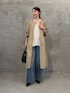【アウター】着用サイズ:F 長いシーズン活躍するフレアコート。 なんと言っても軽量でストレスフリーですし、シワになりにくいので持ち運びにも便利です。 ウエストを絞るとメリハリがつくので、バランスが取りやすいのも嬉しいポイント◎ 154cmでふくらはぎ真ん中くらいの丈感です。 【トップス】着用サイズ:F ほんのりと透け感があるシアーカーディガン。 カーディガンとしてももちろん、ボタンを留めればブラウスとしても着られる優れもの◎ 袖口がリブなので捲っても落ちてこないのも嬉しいポイント。 154cmで後ろ部分はヒップが隠れる丈感で、どんなボトムにも合わせやすいです。 【パンツ】着用サイズ:0 ヒップポケットやハンマーループを取り入れたワークパンツデザインが魅力のデニムパンツ。 後ろウエストにはBEARDSLEYの刺繍を施し、さりげないアクセントに。 程よくハリのある生地で脚のラインを綺麗に見せてくれます◎ カジュアルなスタイリングはもちろん、きれいめトップスとも相性抜群です。 154cmで0サイズを着用し、くるぶしにかかる丈感です。