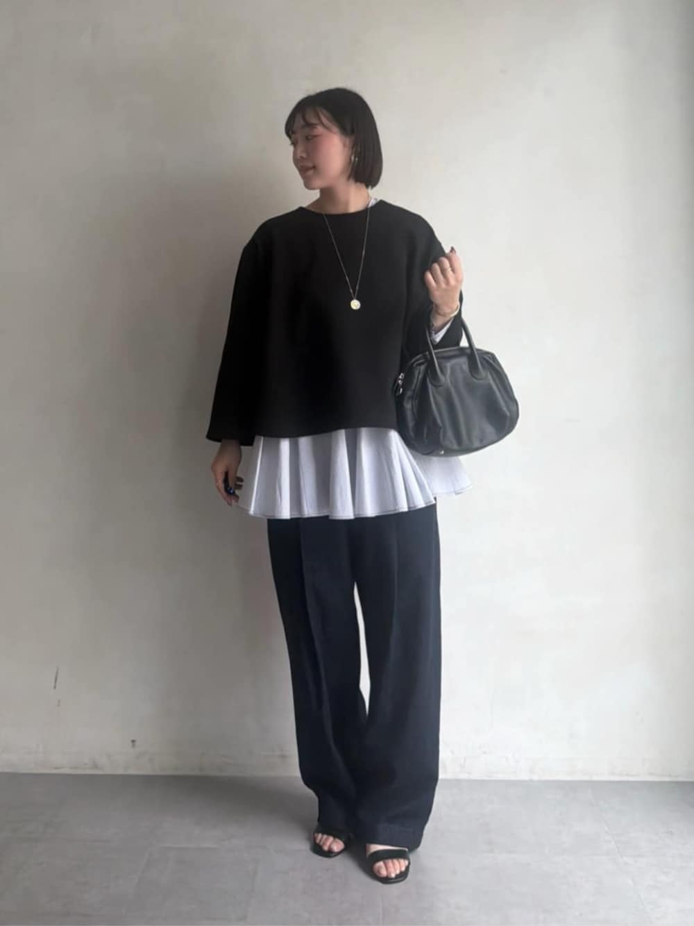 【トップス】Fサイズ着用 リラックス感のあるトレーナーと、レイヤードしたデザインブラウスが魅力のコンビトレーナー。 身頃はゆったりとしていますが、 コンパクトな着丈なのでバランスが取りやすく、重ね着スタイルもすっきり見え。 1枚で簡単にレイヤードコーデができ、 デイリー使いからお出かけまで活躍する、 ビアズリーらしい着映えアイテムです。 【パンツ】1サイズ着用 大人気スタッフインフルエンサー、フルカワさんが本気で考えた「フルカワコラボ ルーズタックデニム」 フロントタックがたっぷりと入っており、 腰周りにゆとりを持たせたゆったりシルエットで楽に履いていただけます。