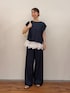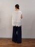 【ベスト】着用サイズ:0 人気のショートベストに0サイズが登場! Fサイズよりも少しコンパクトなサイズ感なのでバランス良く着られました◎ 前後両方着用出来るので、雰囲気を変えて楽しめますよ。 【カットソー】着用サイズ:F 大人気の裾レースカットソーからフレンチスリーブが新登場! 同色でまとめたレース使いにすることで、甘さを抑えた大人な印象になります◎ 裾には1周ゴムが入っているので、丸みのあるシルエットも楽しめます。 1枚で華やかに着るのももちろん、カーディガンのインナーにもおすすめです。 【パンツ】着用サイズ:PM ウエストがゴムで楽に穿けるパンツ。 やや光沢のある生地で落ち感もあるので、脚がスラッと綺麗に見えます◎ また、シワにもなりにくく普段使いからお仕事、旅行にも使えて万能です。 サイズ展開が豊富でお好みのサイズを選べます◎ 154cmでPMサイズを着用し、フルレングス丈です。