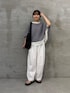 【トップス】 広げると円を描くような、ポンチョのようなフォルムが印象的なニット。 さらりとした肌触りの綿100%素材で、シーズンを通して心地よく着用できます。 袖リブで長すぎない袖丈で、裾がラウンドカットになっている為、低身長でもバランスよく着こなせます。 【パンツ】着用サイズ:0 バレルシルエットが旬な雰囲気を演出するパンツ。 149cmで素足ではいて床につくかつかないかくらいの着丈なので、靴をはいてちょうどいいくらいだと思いました。ウエストもゴムなのでベルトなしでも綺麗に着用できました。 ホワイトはやや透け感があるので透けにくいインナーやペチコートがあるとなお安心です。