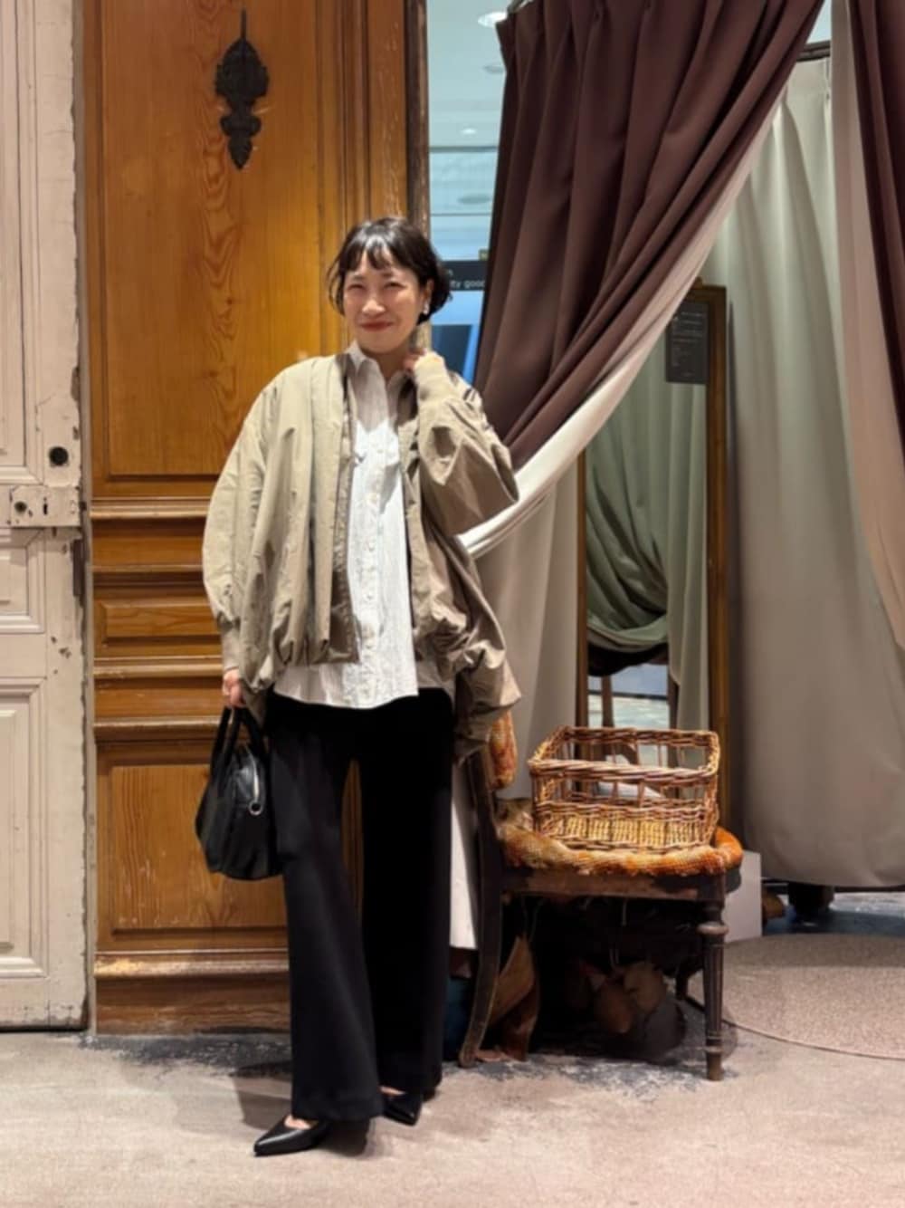 ビアズリーのワイドパンツって、 落ち感があって、 すっきりとするんですよね、 けど、ワガママ言うと、、 もう少しメリハリがほしい🫣🫣🫣 そーーんなワガママが叶うパンツがこれ! ワイドパンツにかわりはないのですが、 素材にほどよい重さがあり、 裾に向かってフレアなので、 脚のくびれを感じれて動くたびに、 ほっそりします! 最近、脚が緩んできた悩みがあるのですが、 着痩せが叶うってこういうことですね。 履いてて嬉しくなっちゃいました♡ 春はもちろん、 夏、秋とロングシーズン楽しめる一本です✨ シャツ合わせはもちろん、 ブルゾンを羽織ってカジュアルにも、 着回せる一本です♪