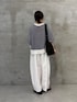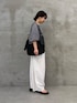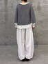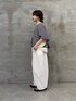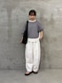 【トップス】 広げると円を描くような、ポンチョのようなフォルムが印象的なニット。 さらりとした肌触りの綿100%素材で、シーズンを通して心地よく着用できます。 袖リブで長すぎない袖丈で、裾がラウンドカットになっている為、低身長でもバランスよく着こなせます。 【パンツ】着用サイズ:0 バレルシルエットが旬な雰囲気を演出するパンツ。 149cmで素足ではいて床につくかつかないかくらいの着丈なので、靴をはいてちょうどいいくらいだと思いました。ウエストもゴムなのでベルトなしでも綺麗に着用できました。 ホワイトはやや透け感があるので透けにくいインナーやペチコートがあるとなお安心です。