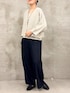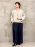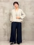 【リネンインレイカーディガン】 インレイ織が立体的で豊かな表情があるカーディガン。 薄手でありながらしなやかでハリのあるラインになります。 肌に点で触れるので汗ばむ時期にもサラッとした肌触りで着やすいです。 肘まで隠れるので、二の腕や肘が気になる人も安心して着れます⭕️ 【リネンインレイタンクトップ】 同じくインレイ織のタンクトップ。 体のラインが出にくく、透けにくいので シアーブラウスや、シアーカーディガンのインナーとしてもオススメです。 【マルチウエストリブパンツ】 3サイズ着用 ビアズリーの大定番のパンツ✨ やや光沢感があるのと、落ち感がある素材なので履くとスッキリ。 腰回りは太めのゴムとリブなので安定しながら食い込まず、長時間の飛行機移動でも安心してご着用いただけます! 3サイズを履くと、私は丈はちょうど良いです。 立ち姿の画像だと長くみえますが、歩いたり、脚を組んだりした時のバランスがよいです。 ウエストはやや大きめなので、細い方はウエストを折って穿いていただくのも良いと思います。