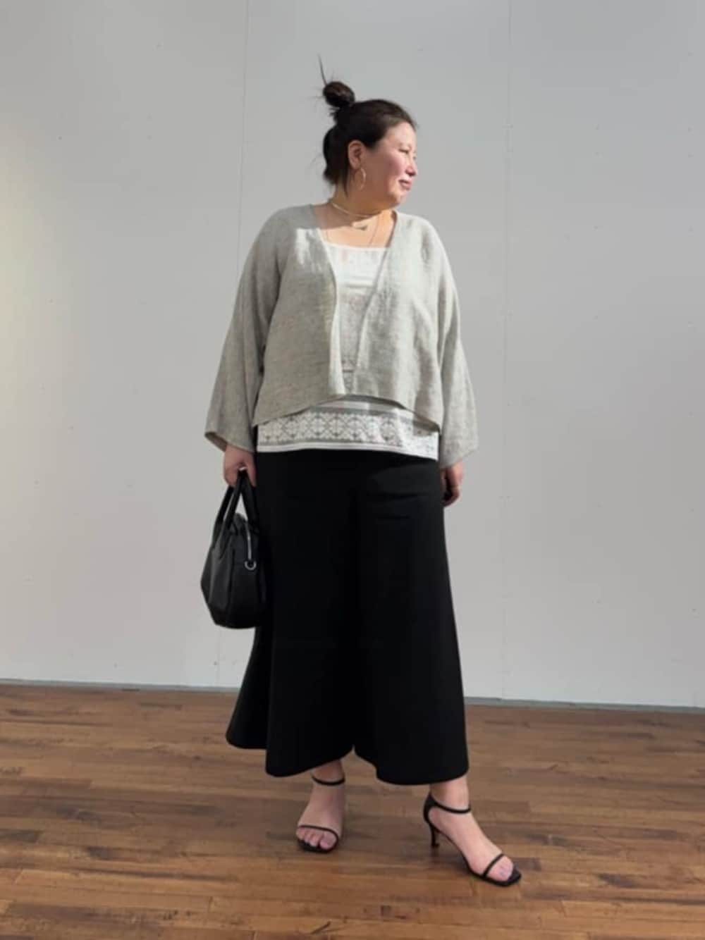 【トップス】 さらさら生地で、肌に密着しないので着心地が良いです。 今から秋口まで3シーズン楽しめちゃいます! ドルマンスリーブなので身体のラインを拾わず すっきり着れます。 二の腕気にならないのが嬉しい🫶 ボタンなどは無くサラッと羽織れるのが嬉しい👍 ワンピースに羽織っても素敵ですよ! 【インナー】 キャミソールの長さ調節できます。 今着てる着丈が1番長めになってます。 私の胸まわりで少し余裕があります。 脇もキツくないので重ね着しても脇が苦しくなかったです。 透けるレースなのでインナーの透け感を楽しんでください👍 着脱は生地伸びないですが辛くなかったです🫣 【パンツ】 カジュアルにもキレイめにも着こなせる万能パンツです。 これからの季節ぴったり! 体型もカバーしてくれる優れもの!!! ウエストがリブとゴムなので楽ちん! 生地が柔らかく足のライン気にせず履けるのが好き。 スカート見えするので、足のライン気にせず楽しめます! パンツが苦手な方もこれさえあれば、春夏のお出かけにも少しいつもと違った印象でコーディネート楽しめるのでおすすめ🤗❤️